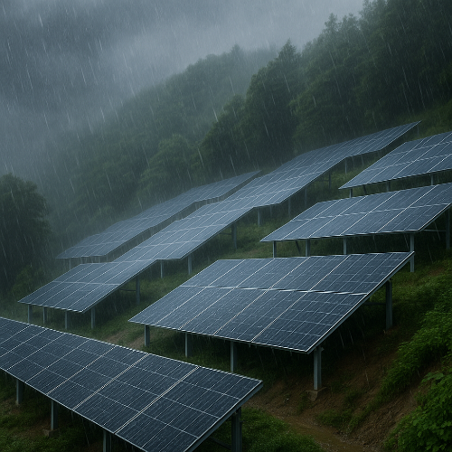 산지에 설치된 태양광발전소는 경사진 지형, 배수 불량, 토사 유출 위험 등으로 여름철 집중호우 시 재해에 취약합니다. 특히, 최근 기후 변화로 인해 갑작스러운 폭우와 강풍이 증가하고 있어 태양광 설비의 시설물 붕괴, 전기 화재, 지반 침하 등의 위험이 커지고 있습니다.