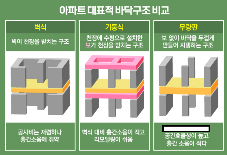 * 무량판 공법은 공간 활용성을 증대시키는 장점을 가지고 있으며