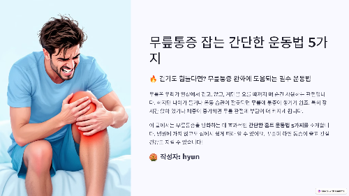 이 글에서는 무릎통증을 완화하는 데 효과적인 간단한 홈트 운동법 5가지를 소개합니다. 병원에 가지 않고도 집에서 쉽게 따라 할 수 있어요. 꾸준히 하면 통증이 줄고 관절 건강도 지킬 수 있습니다!