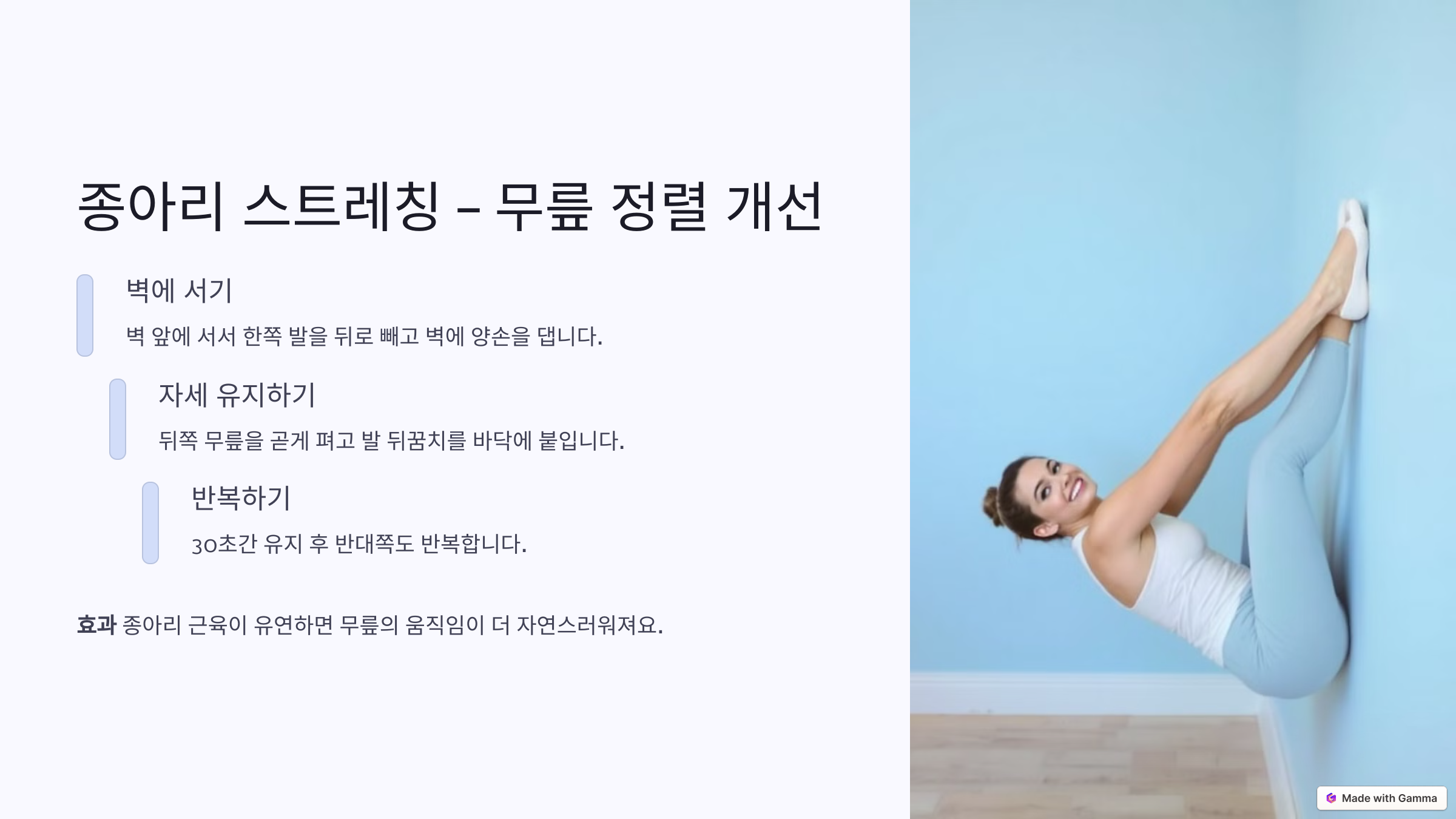 3. 종아리 스트레칭 – 무릎 정렬 개선