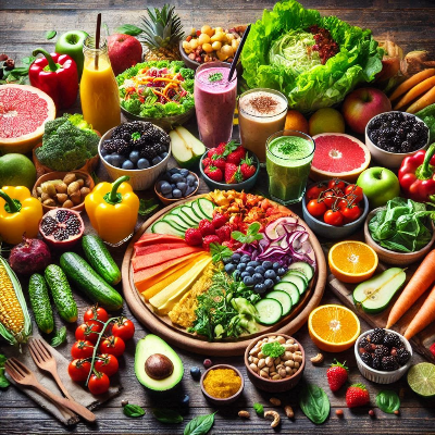 - 채소, 과일, 씨앗류, 견과류 위주의 식단으로 구성