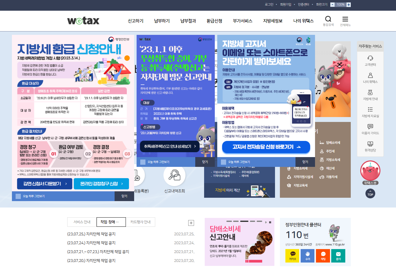 1. PC로 납부하려면 위택스 홈페이지에 접속하여 회원가입 또는 간편인증을 해야 합니다.