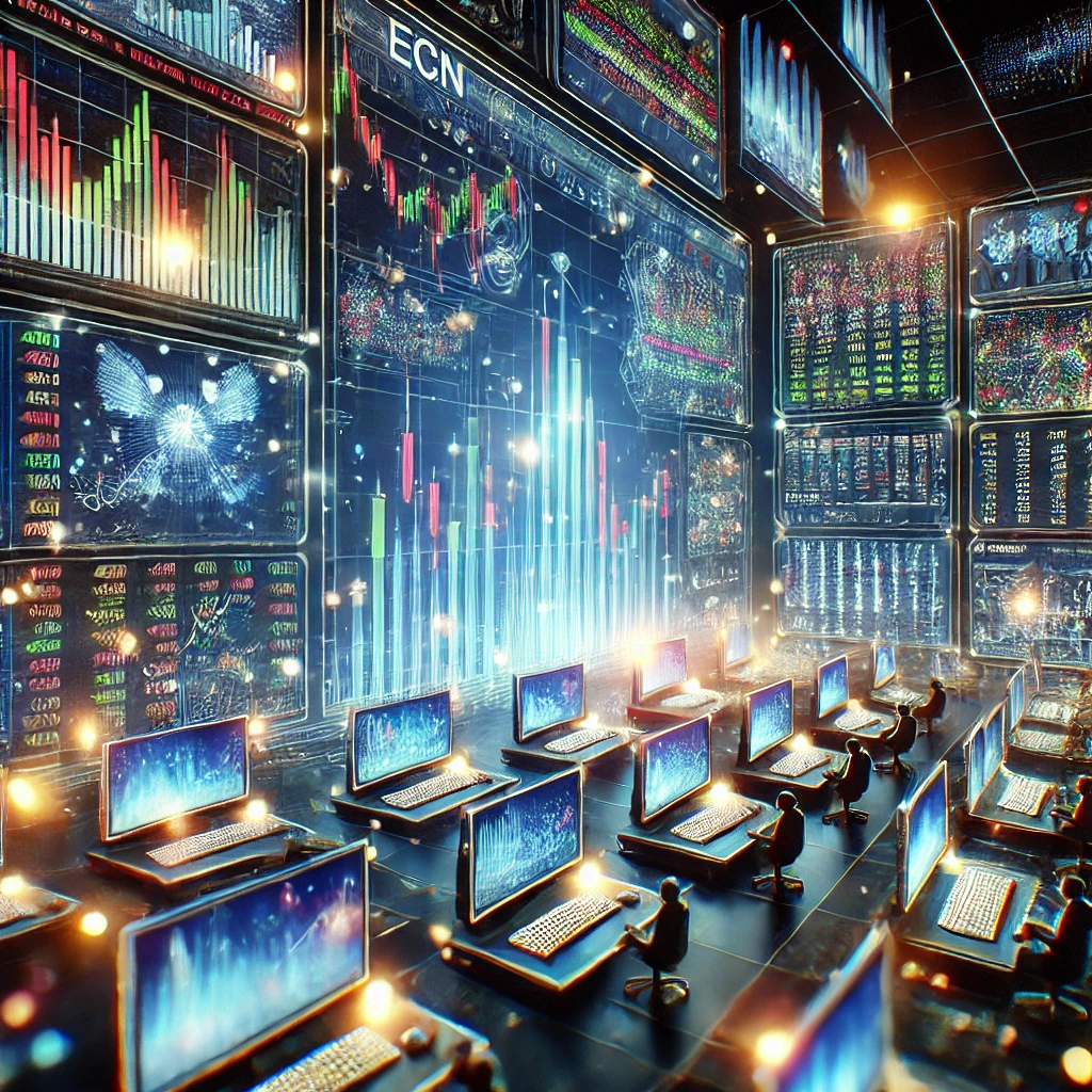 컴퓨터 네트워크를 이용해 자동으로 매수-매도 주문을 연결하는 전자 거래 시스템입니다. 대표적인 ECN으로는 Instinet, BATS, ARCA 등이 있습니다.