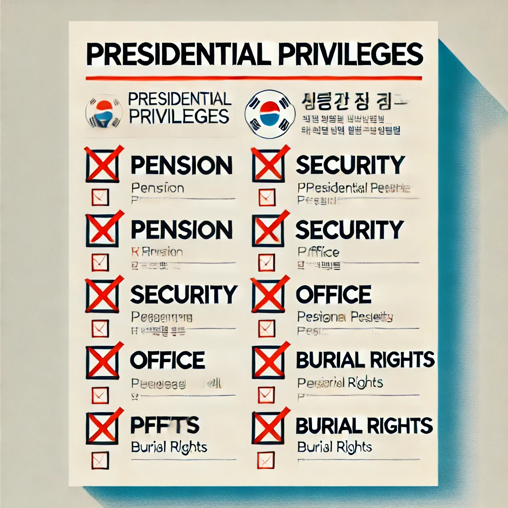즉, 전직 대통령으로서의 ‘신분’ 자체가 박탈되는 것이며, 국가가 제공하는 어떠한 형태의 지원도 받을 수 없습니다.