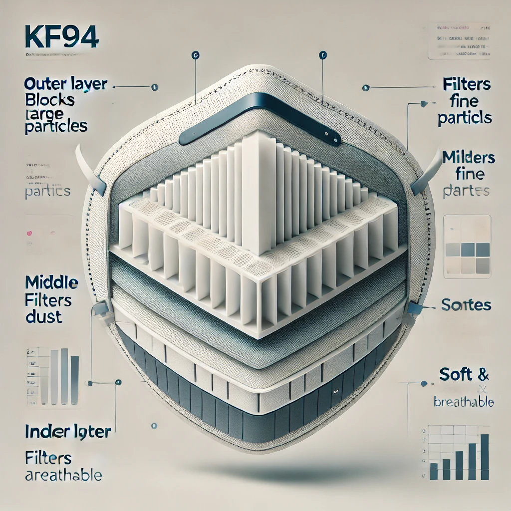 - 차단 성능: KF94 등급, 황사 및 미세먼지 차단 효과