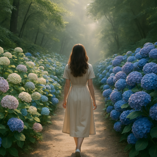 초여름, 수국이 피어나는 숲에서