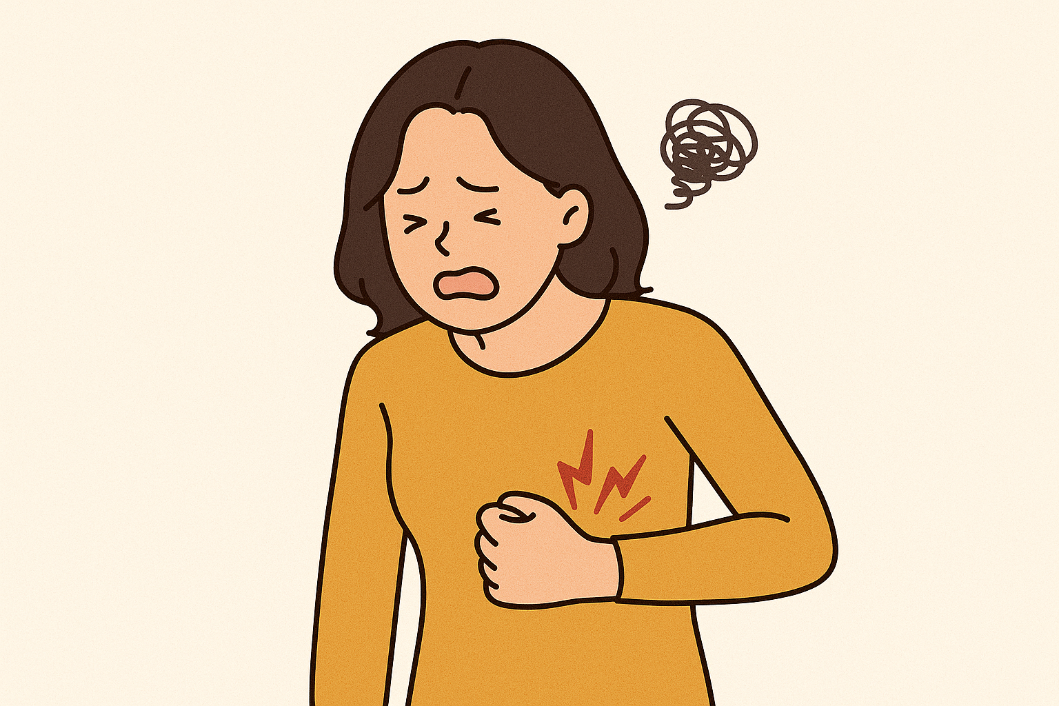 A: 고령자나 당뇨 환자의 경우 통증이 없이 오심·구역질만 나타날 수 있어요. 신경 쓰이시면 꼭 진료 받으세요 (mayoclinic.org).