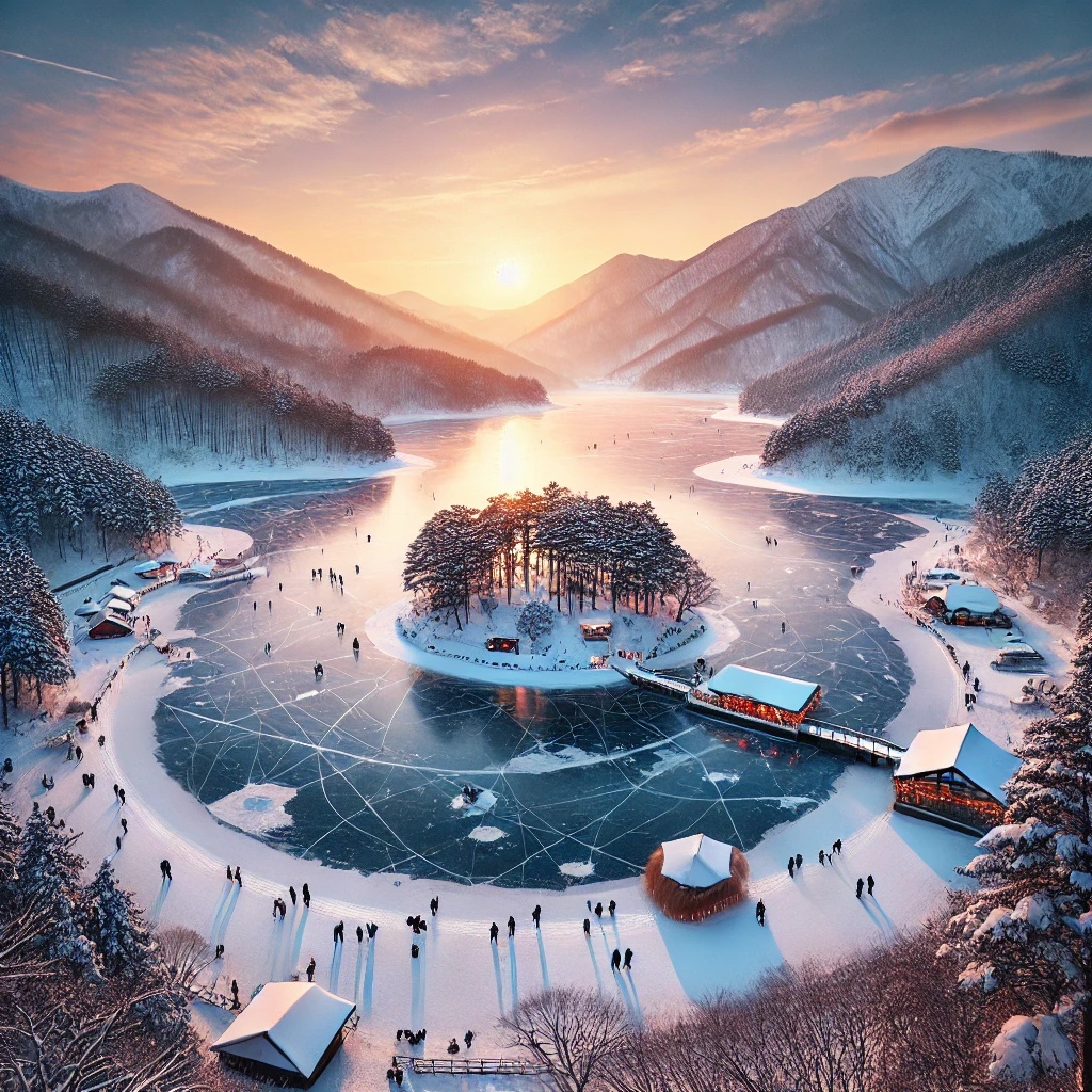 🌲 얼어붙은 호수와 로맨틱한 겨울 빛 축제