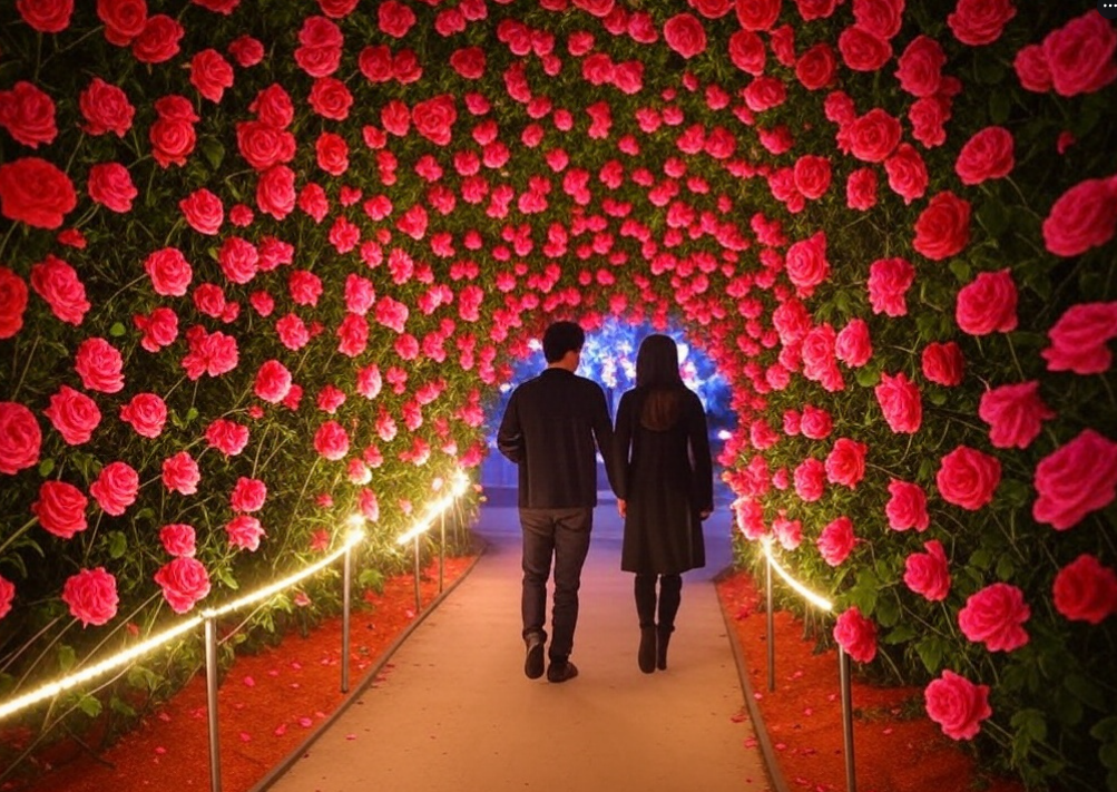 5km의 장미터널을 따라 펼쳐지는 환상적인 장미 세상! 2025년에는 ‘로맨틱 나이트’를 테마로 야경이 더욱 화려해진다고 해요. 장미정원 야간개장과 함께 다양한 퍼포먼스도 준비되어 있습니다.